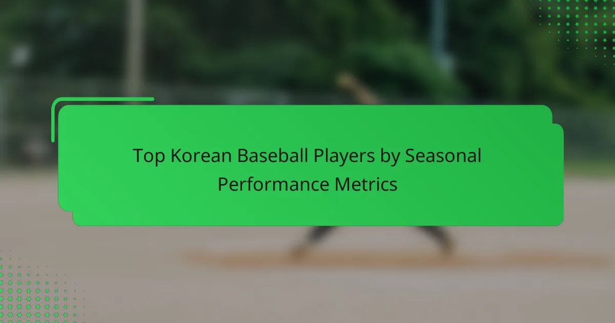 Key seasonal performance metrics for Korean baseball players include batting average, on-base percentage, slugging percentage, Wins Above Replacement (WAR), earned run average (ERA), and fielding metrics. These statistics provide insights into a player’s offensive and defensive contributions throughout the season.